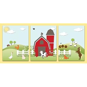 Hi, I assume you're here because you're looking for a discounted Baby Nursery Kids Wall Art Farm Animal Theme 3 Panel Stretched Canvas Print. I know it looks awesome !